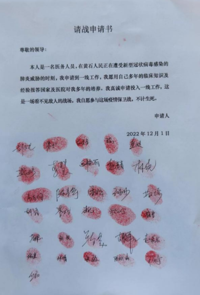 (醫(yī)務人員現(xiàn)場簽寫請戰(zhàn)申請書)