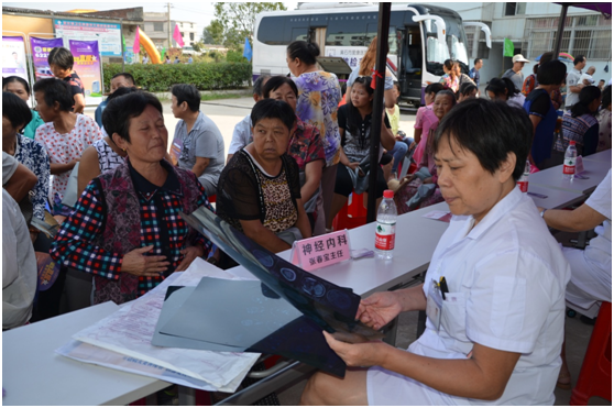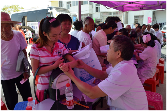 體檢車醫(yī)護人員為居民進行“愛心體檢”
