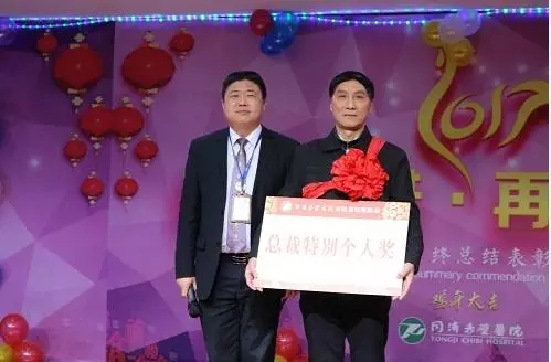 楊總的講話結(jié)束后,大會(huì)對(duì)2016年度金牌員工、優(yōu)秀員工、優(yōu)秀團(tuán)隊(duì)逐一進(jìn)行了表彰。本年度共評(píng)出團(tuán)隊(duì)獎(jiǎng)五個(gè)、金牌員工三名、優(yōu)秀員工二十二名。在這次評(píng)比中,同濟(jì)赤壁醫(yī)院特別設(shè)立了兩個(gè)新的獎(jiǎng)項(xiàng):最具創(chuàng)新團(tuán)隊(duì)、最具正能量個(gè)人獎(jiǎng)。這種開拓式獎(jiǎng)項(xiàng)的設(shè)定,對(duì)進(jìn)一步弘揚(yáng)創(chuàng)新意識(shí)、正能量意識(shí)起到了極大的推動(dòng)作用。經(jīng)過(guò)科室推薦、員工海選、嚴(yán)格評(píng)審后,腫瘤科、呼吸內(nèi)科等五個(gè)科室榮獲了團(tuán)隊(duì)獎(jiǎng);袁志宏、涂俊、張鋒被評(píng)為金牌員工;涂敬國(guó)等22人被評(píng)為優(yōu)秀員工。本年度總裁特別個(gè)人獎(jiǎng)和特別團(tuán)隊(duì)獎(jiǎng)則分別頒給了為我院腫瘤科建設(shè)作出了巨大貢獻(xiàn)的朱國(guó)清主任,以及不畏艱辛、熱心服務(wù)于特殊群體的精神病科。