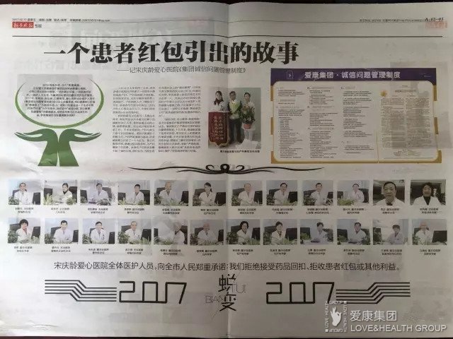 “誠(chéng)信辦院、發(fā)心做事、制度管院”的管理理念是北京愛(ài)康集團(tuán)管理醫(yī)院的制勝法寶。集團(tuán)制定了嚴(yán)格而完善的誠(chéng)信問(wèn)題管理制度,十幾年來(lái),北京愛(ài)康集團(tuán)旗下的所有醫(yī)院,所有醫(yī)生入職都要進(jìn)行承諾宣誓,不允許收受患方紅包或其他利益,增強(qiáng)員工廉潔自律意識(shí),同時(shí)在醫(yī)院公共場(chǎng)所,張貼“嚴(yán)禁藥商、器械商進(jìn)入醫(yī)療區(qū)域”及投訴電話(huà)的標(biāo)識(shí),維護(hù)了醫(yī)院純凈的醫(yī)療環(huán)境。