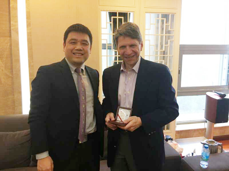 集團(tuán)執(zhí)行董事侯杰贈與Pardoll博士北京愛康集團(tuán)紀(jì)念徽章