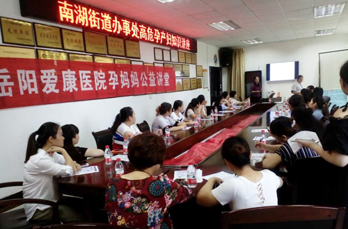 9月8日上午,岳陽愛康醫(yī)院在南湖街道辦事處舉辦“孕媽媽公益講堂”之“高危孕產(chǎn)婦知識講座”,由愛康醫(yī)院婦產(chǎn)科護(hù)士長李蘭芳親自授課。