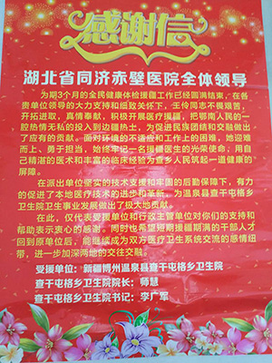 近日 ,北京愛康集團(tuán)旗下同濟(jì)赤壁醫(yī)院就收到這樣一封來自三千公里外的感謝信,感謝信內(nèi)容如下: