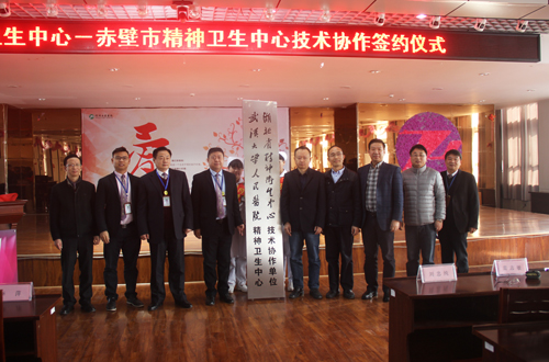 2017年11月23日,湖北省精神衛(wèi)生中心與赤壁市精神衛(wèi)生中心正式簽署技術(shù)協(xié)作協(xié)議,湖北省精神衛(wèi)生中心主任、武漢大學(xué)人民醫(yī)院精神病科主任劉忠純教授、部長雷志敏、白漢平教授、肖衛(wèi)東教授、同濟(jì)赤壁醫(yī)院總裁楊治國、院長皮志杰、副院長錢佐林、副院長方典偉等領(lǐng)導(dǎo)出席了合作簽約儀式。