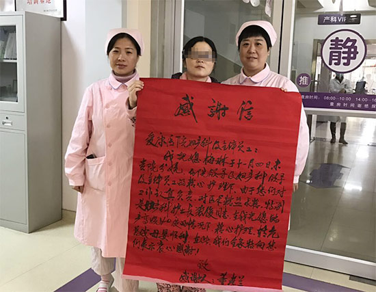 患者寫給產(chǎn)科感謝信(右為張俊護士長)