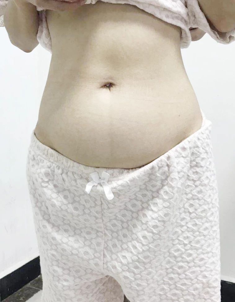 術(shù)前李女士腹部籃球大小腫瘤包塊