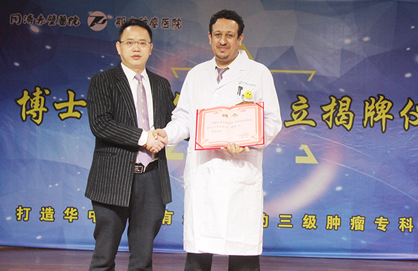 成立博士后工作室,醫(yī)院將積極創(chuàng)造有利條件,為工作室營造良好的科研環(huán)境,對博士后的研究工作提供全方位的支持和幫助,將以“人民滿意醫(yī)院”為工作目標,在市委、市政府及衛(wèi)健委的正確領導下,努力把同濟赤壁醫(yī)院打造成醫(yī)術(shù)精湛、服務一流、環(huán)境優(yōu)美的現(xiàn)代化綜合醫(yī)院。與此同時,工作室的成立為腫瘤中心的發(fā)展也迎來新篇章。穆罕默德博士的臨床研究課題——腫瘤免疫治療,將為腫瘤患者的治療打開了一扇新大門,為腫瘤治療開辟了新方向,為在死亡邊緣掙扎的患者爭取到了“加時”。