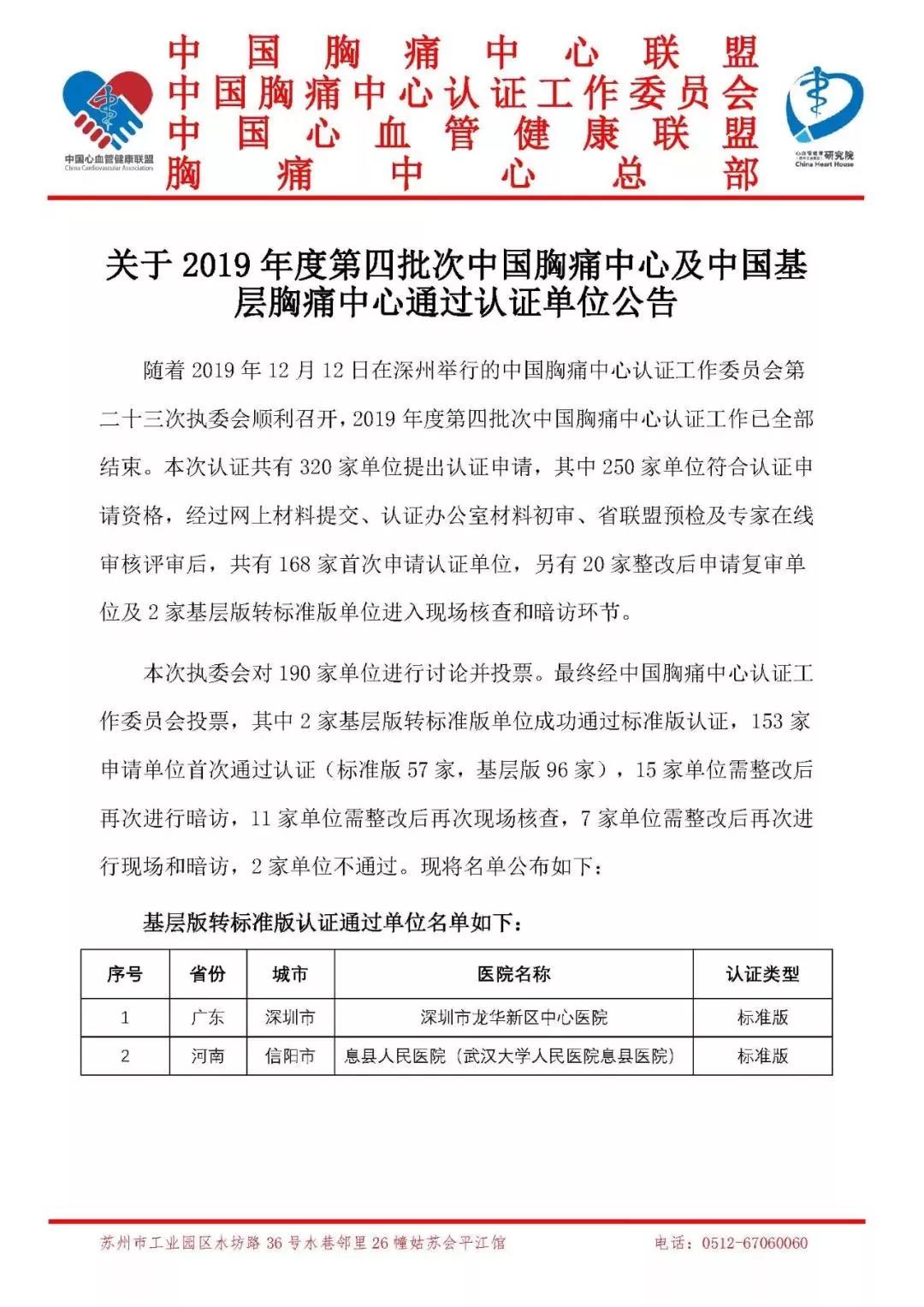這一天,中國(guó)胸痛中心總部發(fā)布《關(guān)于2019年度第四批次中國(guó)胸痛中心及中國(guó)基層胸痛中心通過(guò)認(rèn)證單位公告》。經(jīng)過(guò)專(zhuān)家暗訪和現(xiàn)場(chǎng)核查,黃石愛(ài)康醫(yī)院順利通過(guò)中國(guó)胸痛中心認(rèn)證,成為國(guó)家級(jí)胸痛中心。這是繼黃石市中心醫(yī)院之后,黃石第二家“三甲”醫(yī)院建設(shè)成為國(guó)家級(jí)胸痛中心,它標(biāo)志著愛(ài)康醫(yī)院急性心肌梗死等胸痛疾病綜合診療水平已經(jīng)與國(guó)家標(biāo)準(zhǔn)胸痛診療技術(shù)接軌,今后可以為黃石及周邊地區(qū)的眾多胸痛疾病患者提供更及時(shí)、更精準(zhǔn)、更優(yōu)質(zhì)的健康服務(wù)。