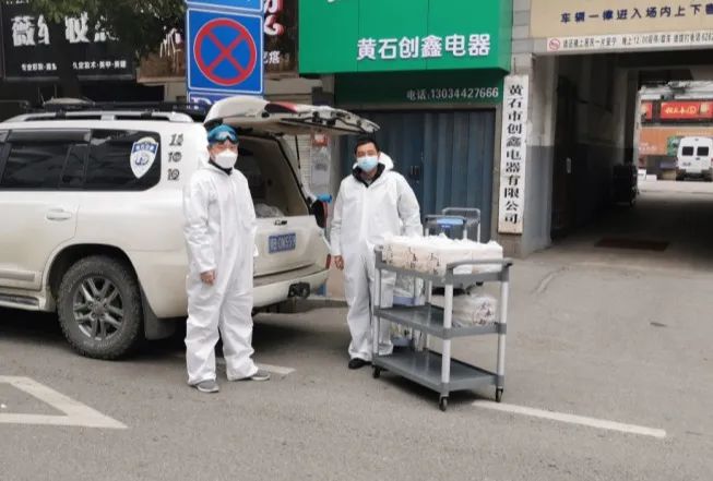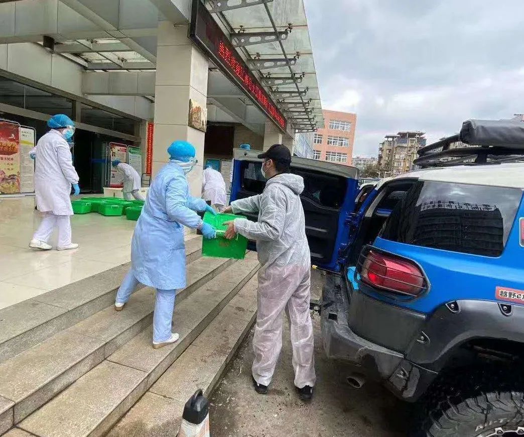 原來,在疫情初期,因餐館停業(yè),一線醫(yī)務(wù)人員面臨吃飯難題。1月25日,黃石市烹飪協(xié)會(huì)開始主動(dòng)承擔(dān)起為各醫(yī)院一線工作人員免費(fèi)送愛心盒飯的公益行動(dòng)。但是醫(yī)院點(diǎn)多面廣,且比較分散,愛心盒飯很難及時(shí)送達(dá)。怎么辦?關(guān)鍵時(shí)刻,越野e族黃石分隊(duì)志愿者主動(dòng)請(qǐng)纓,義務(wù)承擔(dān)起為全市各防疫定點(diǎn)醫(yī)院和隔離酒店的免費(fèi)送餐任務(wù)。