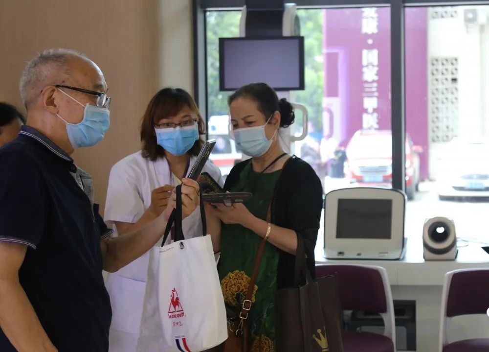 在典禮現(xiàn)場,許多黃石市民見證了愛康健康管理中心的開業(yè),他們被愛康云的服務(wù)產(chǎn)品所吸引,認(rèn)真聽取工作人員對服務(wù)產(chǎn)品的詳細(xì)介紹。他們還親自體驗了一把方便快捷的體檢一體機(jī),血壓、血糖、血管是否硬化,在這臺機(jī)器上就能完成檢查,并立刻出結(jié)果,現(xiàn)場好不熱鬧!