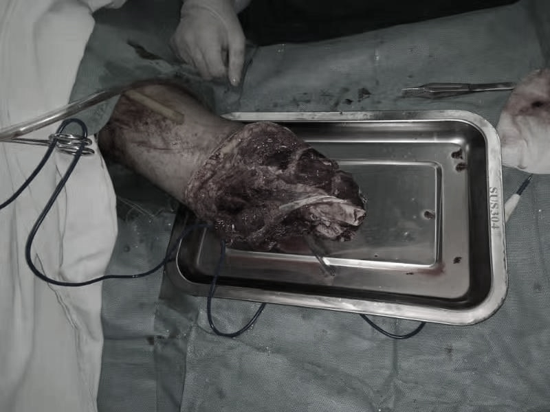 最要命的是,整只左前臂被碾斷飛到了草叢中。