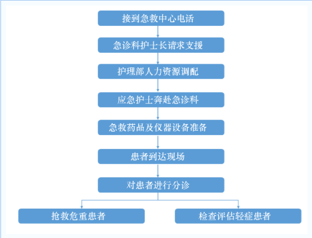 演練于14:30分在急診科大廳開(kāi)始,首先由急診科接到急救電話,隨后,參演人員按照預(yù)先分配好的角色,備好搶救物品,各搶救人員迅速準(zhǔn)備到位,等待患者到達(dá),立即采取急救措施,啟動(dòng)應(yīng)急預(yù)案。