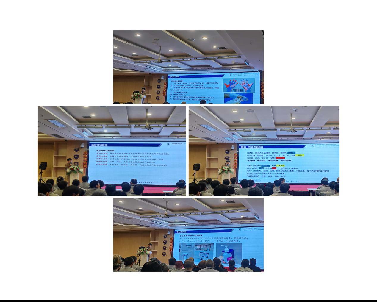 院感專職人員魯恩浩老師主要對(duì)消毒隔離、清潔衛(wèi)生程序與方法、醫(yī)療廢物管理、職業(yè)暴露和標(biāo)準(zhǔn)預(yù)防、手衛(wèi)生等五個(gè)內(nèi)容開展講解,列舉存在的不足,促使保潔人員認(rèn)識(shí)到自身的特殊性及在醫(yī)院感染工作中擔(dān)當(dāng)?shù)闹匾巧?,并要求保潔人員重視院感防控,認(rèn)真貫徹每個(gè)細(xì)節(jié)。
