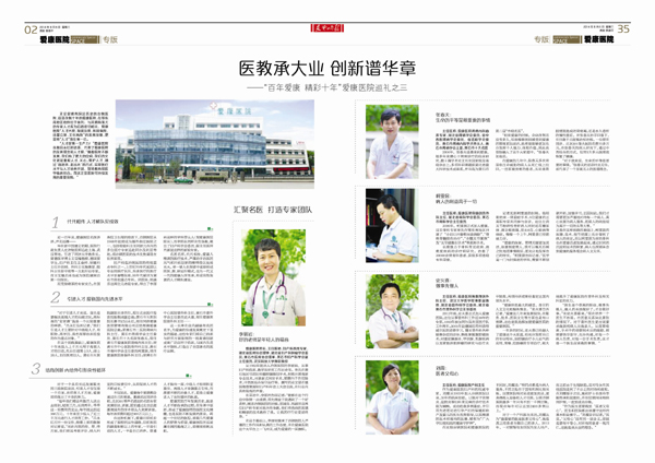 這一長串在業(yè)內(nèi)赫赫有名的名字,為愛康的快速發(fā)展奠定下堅實的基礎,這些專家們將自己臨床與研究方面取得的一批高端創(chuàng)新成果廣泛應用于臨床,與國內(nèi)先進水平接軌,打造出了全國著名的醫(yī)療品牌。