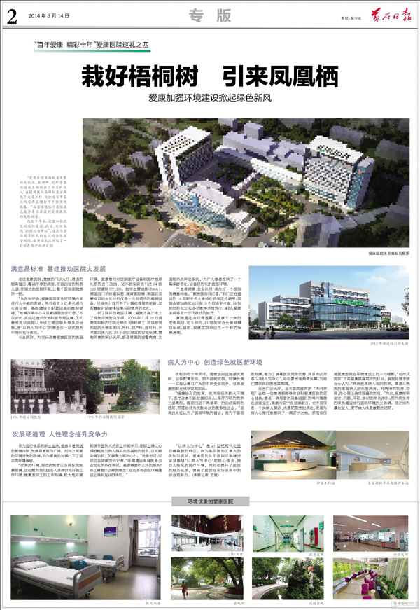走進(jìn)愛康醫(yī)院,寬敞的門診大廳、通透的服務(wù)窗口、整潔干凈的病房、花香四溢的林蔭大道、花園式的醫(yī)院環(huán)境,讓整個(gè)醫(yī)院面貌煥然一新。