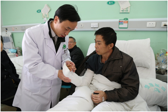 袁翔主任為雷師傅細(xì)心檢查手指愈合情況