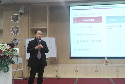 劉圻教授上午講解了業(yè)務(wù)領(lǐng)導(dǎo)力模型(BLM)的相關(guān)知識,并當(dāng)堂布置了作業(yè)??偛冒鄬W(xué)員按照戰(zhàn)略單元,分成6個小組,利用中午的休息時間,進行充分的討論并完成作業(yè)。