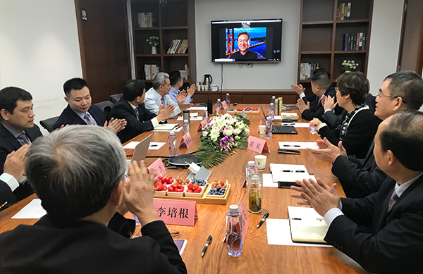 李培根院士與集團(tuán)高管們的見面會(huì)上,通過網(wǎng)絡(luò)連接了遠(yuǎn)在加拿大的集團(tuán)北美總部辦公室,集團(tuán)董事長(zhǎng)王東博士在地球的另一端和武漢總部會(huì)場(chǎng)進(jìn)行視頻連線。會(huì)上,集團(tuán)董事長(zhǎng)王東博士首先向在座的高管們隆重介紹了李培根院士加入集團(tuán)的情況。他說:“非常榮幸,也非常激動(dòng),能邀請(qǐng)李院士加入到我們愛康集團(tuán),成為我們聯(lián)席董事長(zhǎng)。我跟李院士認(rèn)識(shí)至今已經(jīng)十五年了,共同的價(jià)值觀讓我們結(jié)下不解之緣。回首十五年來,李院士在我們集團(tuán)的發(fā)展中,參與了很多次重大決策,對(duì)修訂《愛康基本法》也提出了很多指導(dǎo)性意見。”