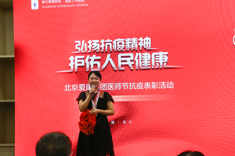 集團(tuán)高級(jí)副總裁翟冕在談到當(dāng)初看到黃石愛康醫(yī)院馳援“小湯山”醫(yī)院、醫(yī)護(hù)們用文具制作防護(hù)面罩等抗疫視頻時(shí),也是幾度哽咽。她代表愛康集團(tuán)再三地感謝了所有抗疫英雄們,并向我們隆重介紹了本次表彰的至高榮譽(yù)——抗疫紀(jì)念勛章和董事長親筆感謝信。