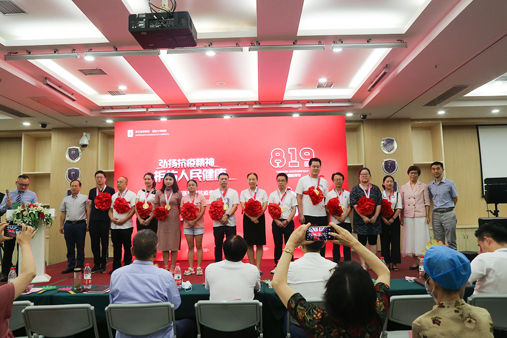 各科室代表領(lǐng)取抗疫紀(jì)念勛章和慰問金