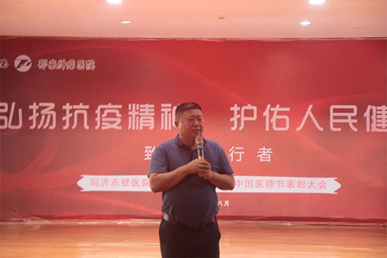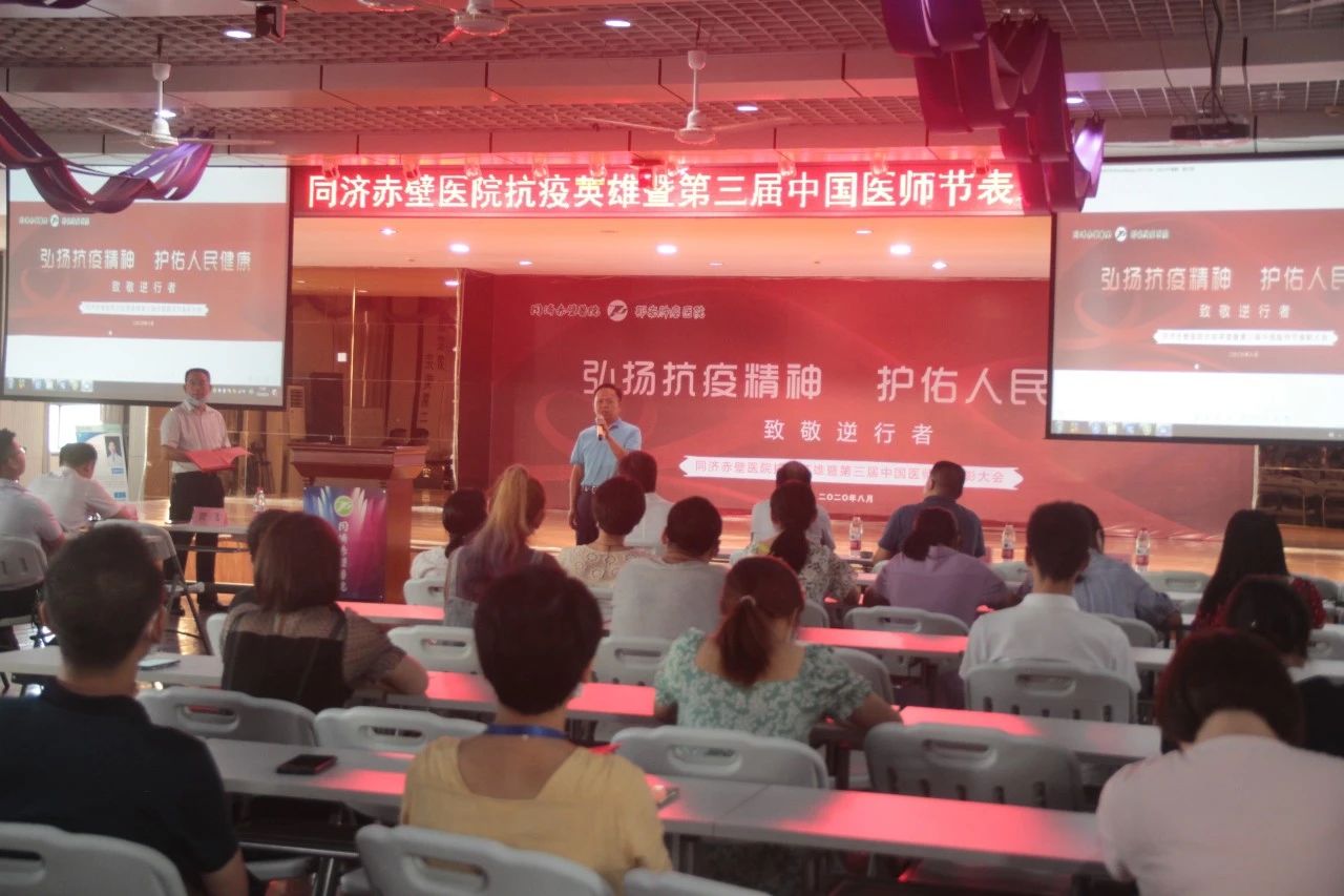 隨著第三個中國醫(yī)師節(jié)的到來,為表彰抗疫英雄們挺身而出、無私奉獻(xiàn)、以患者至上的精神,同濟(jì)赤壁醫(yī)院于2020年8月24日下午隆重舉行抗疫英雄暨第三屆中國醫(yī)師節(jié)表彰大會,大會主題為:弘揚抗疫精神,護(hù)佑人民健康。
