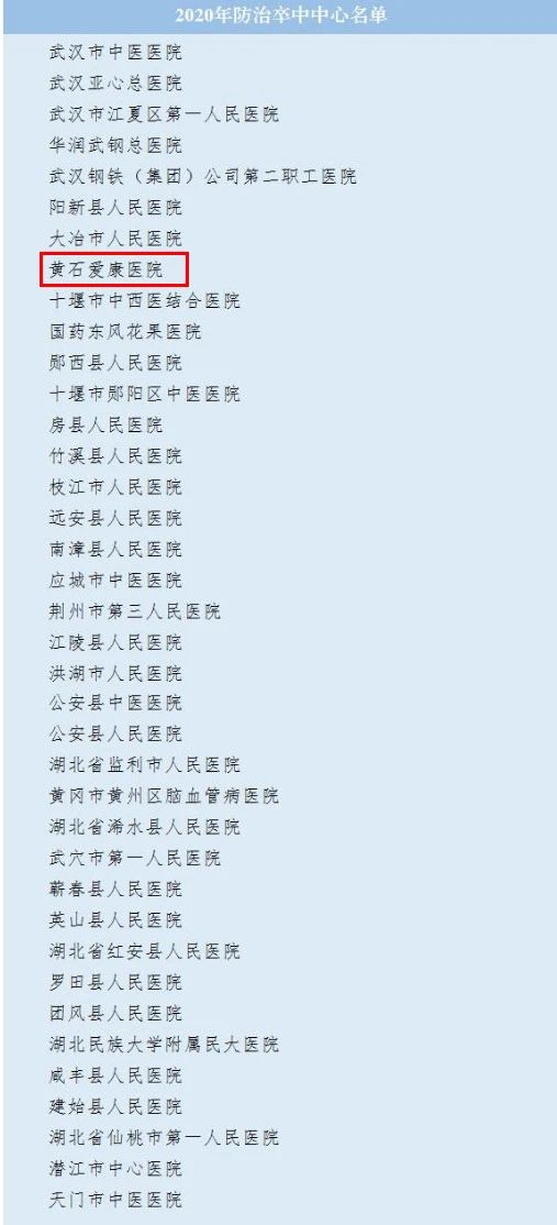 2020年12月3日,由湖北省腦卒中防治工作委員會(huì)舉辦的“湖北省腦卒中綜合防治適宜技術(shù)培訓(xùn)班暨 2020 年湖北省腦卒中防治工作總結(jié)會(huì)”在武漢隆重開幕。會(huì)議宣布了湖北省2020年度“防治卒中中心”名單,黃石愛康醫(yī)院榜上有名。