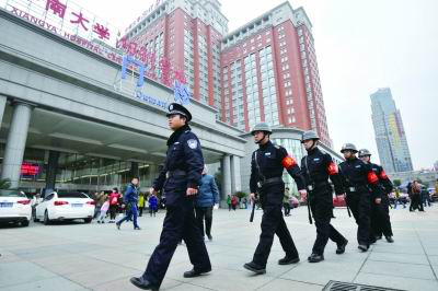 進(jìn)醫(yī)院先安檢、醫(yī)生持盾牌接診……近年來,多地發(fā)生醫(yī)生遇襲事件。衛(wèi)生部要求各級(jí)衛(wèi)生行政部門協(xié)調(diào)公安機(jī)關(guān)向二級(jí)以上醫(yī)院等重點(diǎn)醫(yī)療機(jī)構(gòu)派駐“警務(wù)室”,共同加強(qiáng)醫(yī)療機(jī)構(gòu)治安管理。作為我省首個(gè)醫(yī)院警務(wù)室,湘雅醫(yī)院警務(wù)室設(shè)立5年未發(fā)生一起群體性醫(yī)療事件,每有醫(yī)患糾紛總能及時(shí)化解。2014年11月19日,這一“警院共建平安醫(yī)院”模式得到了省委副書記、省長杜家毫的肯定。